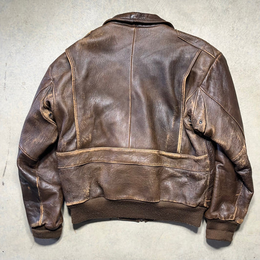 Vintage 70s/80s Neil Martin Airborne Brown Leather Bomber Jacket 38