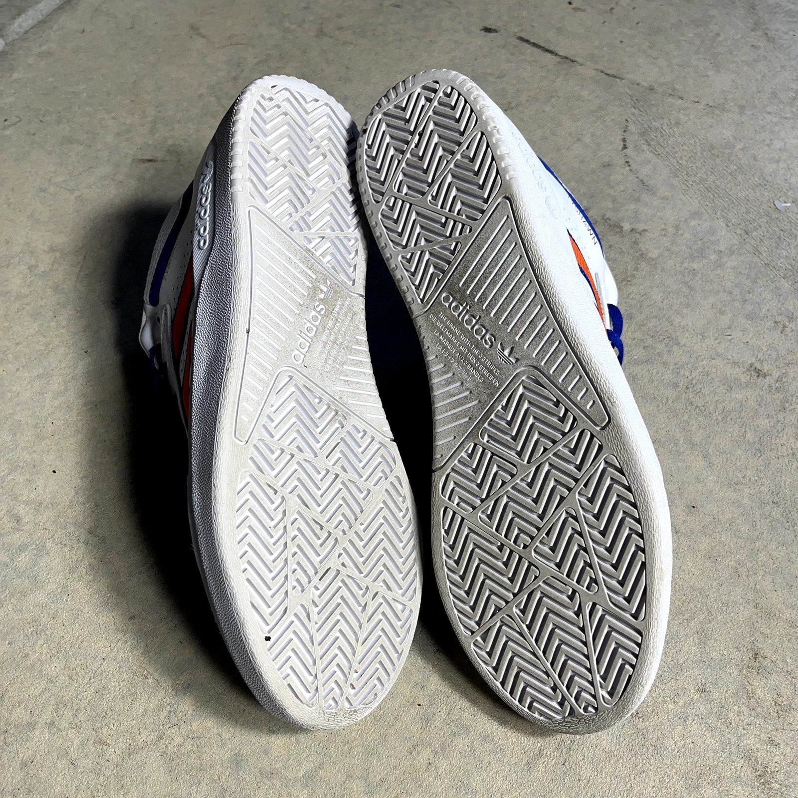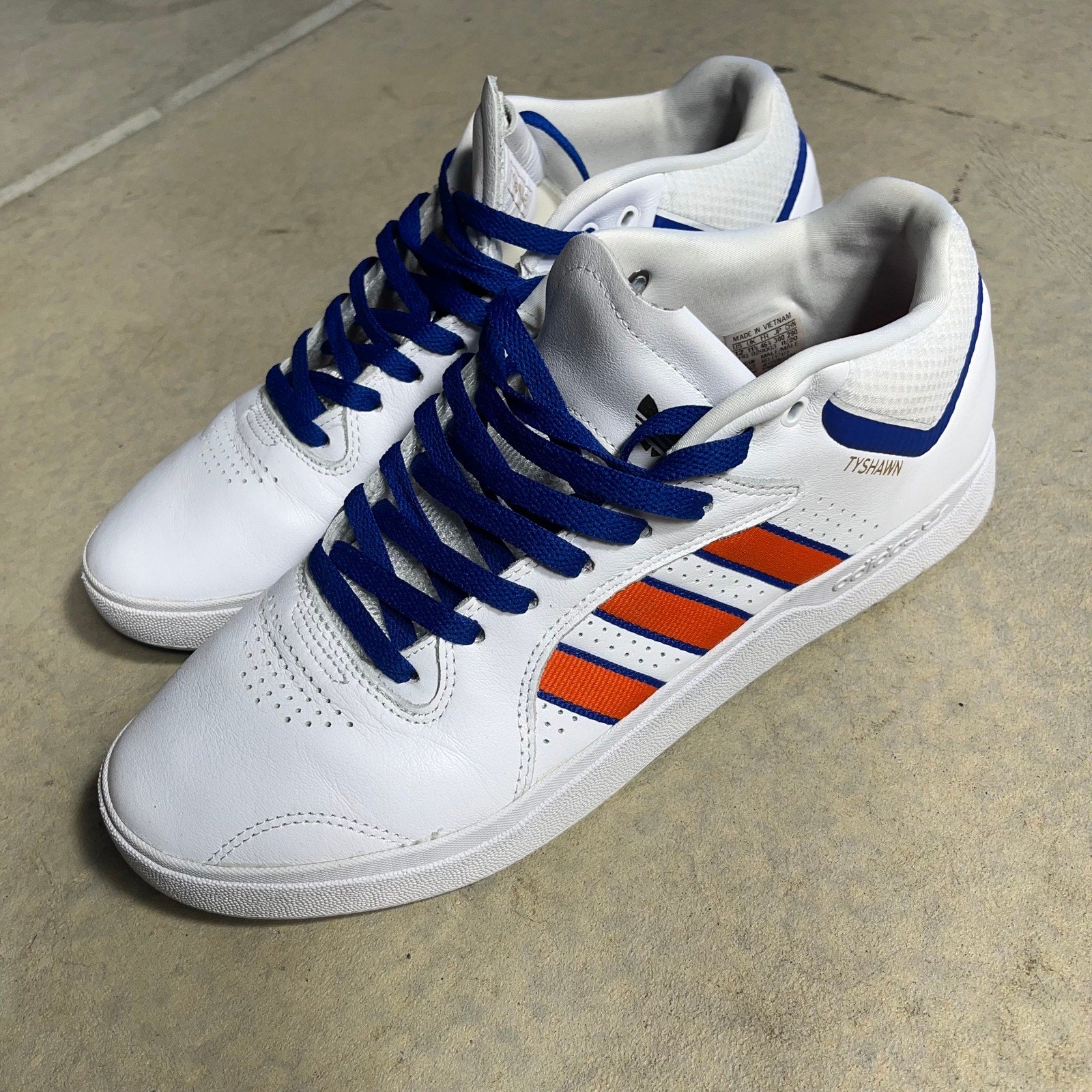 Adidas Originals Men's TYSHAWN Shoes in Cloud White/Orange/Blue Bird Size 12