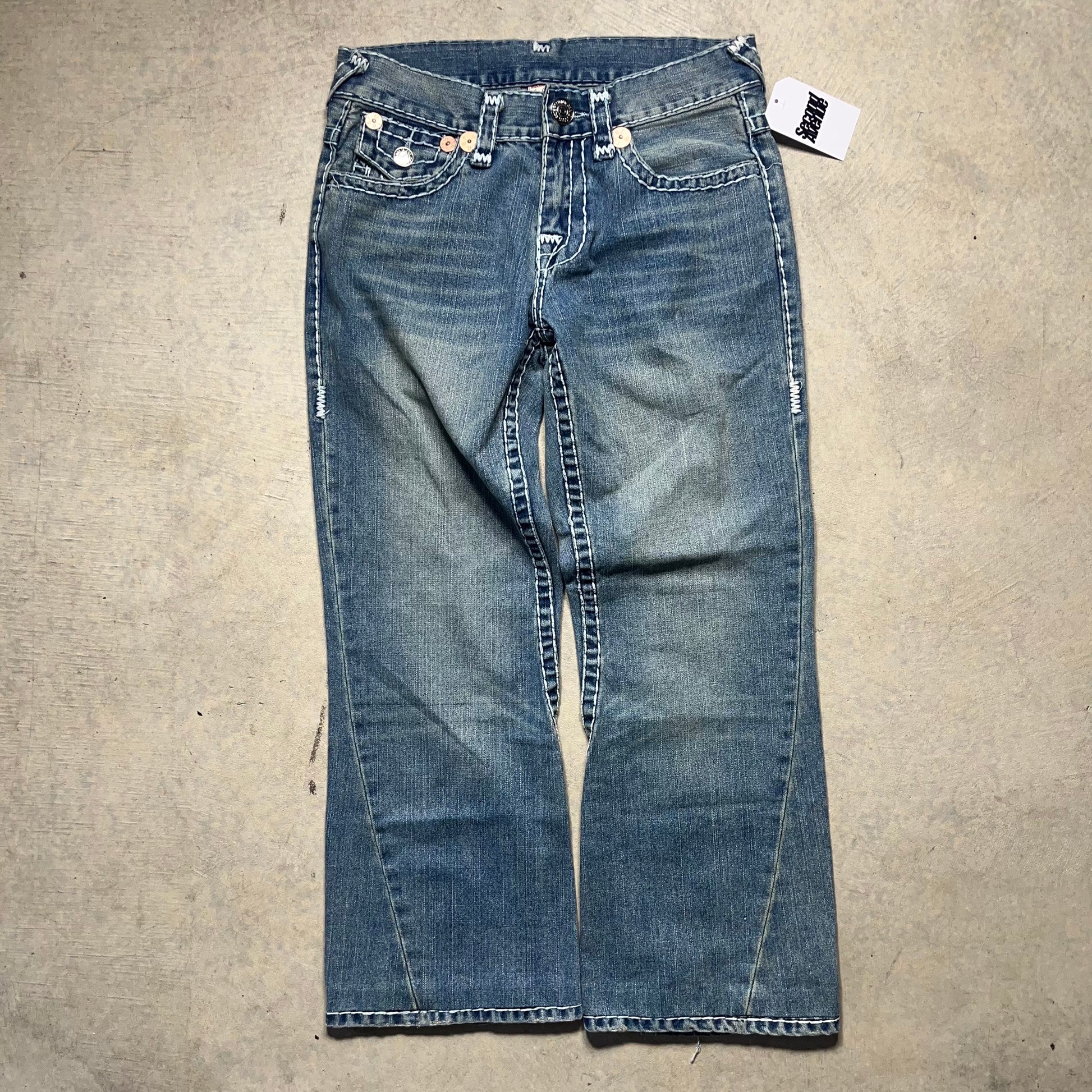 True Religion Joey Super T Flare Jeans USA Bootcut Y2K 32x30 Stitch Flap Pocket